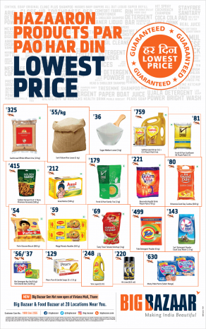 Take a look at the ad for commodities with just the price and the packshot by Big Bazaar below. For these, you don’t even require a copywriter.